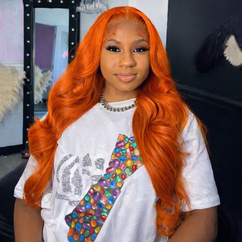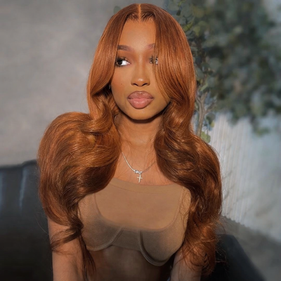 “Ginger Goddess" Glueless Brazilian Human Hair HD Lace Frontal Body Wave wig