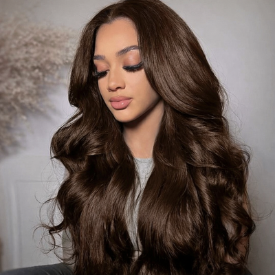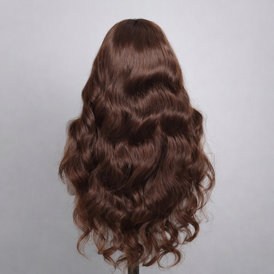 Indian Glueless Dark Chocolate Brown Body Wave-Transparent lace Human Hair Wig