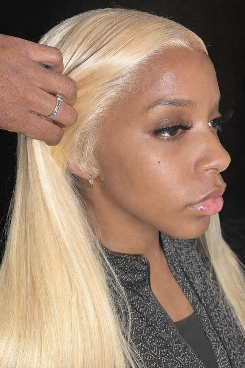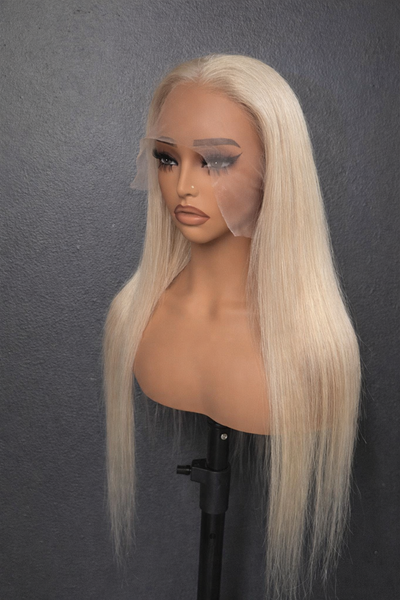 "Blonde Ice" Glueless Brazilian Human Hair HD Lace-613 Bone Straight wig