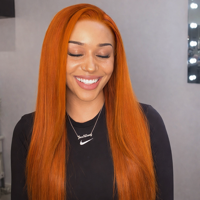 "Orange Ginger" HD Lace-Glueless Brazilian Human Hair Bone Straight wig