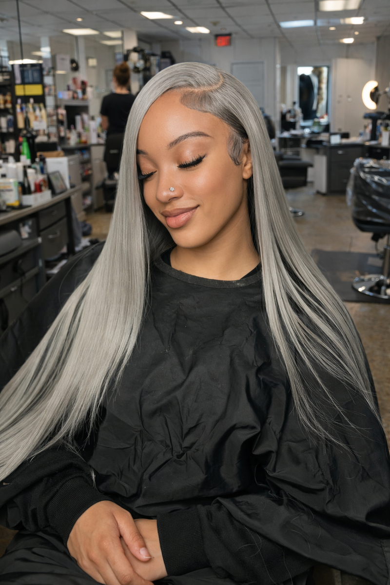 “Silver Icy" Glueless HD Lace Brazilian Human Hair Bone Straight Frontal-Pre-Plucked wig