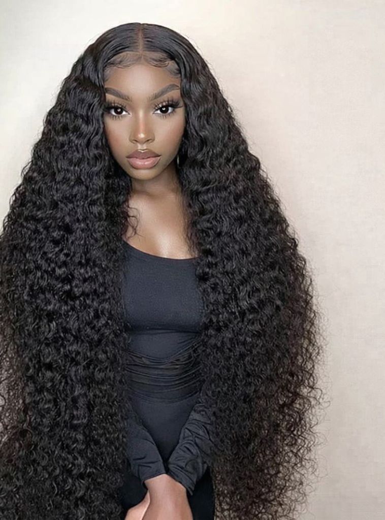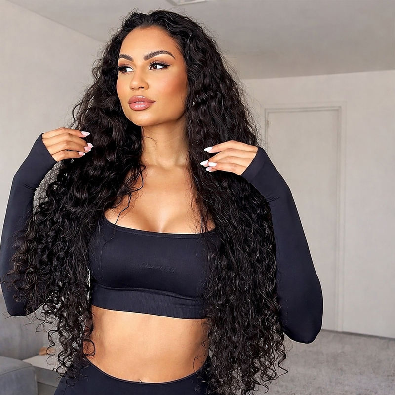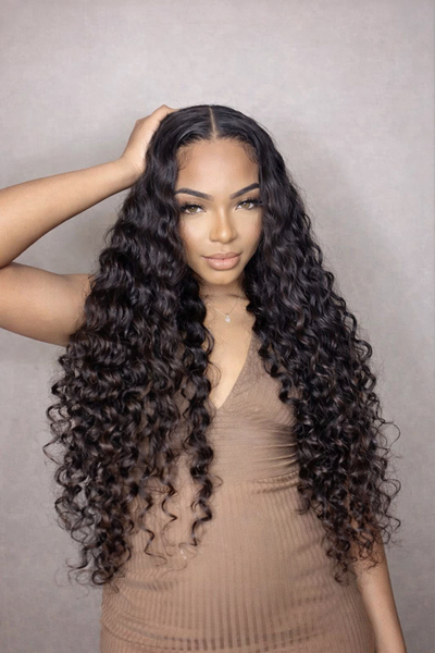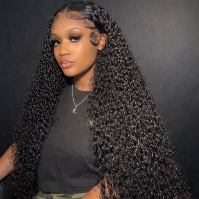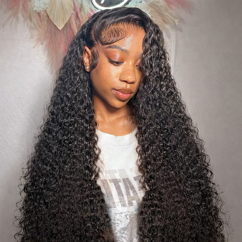 "Natural Curly Wave" Glueless Brazilian Human Hair HD Lace Frontal Deep Water Wave wig