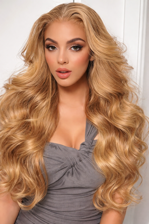 “Honey Glaze" Glueless Braziliqn Human Hair HD Lace Frontal Body Wave – Honey blonde Luxury Wig