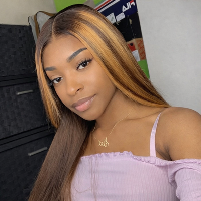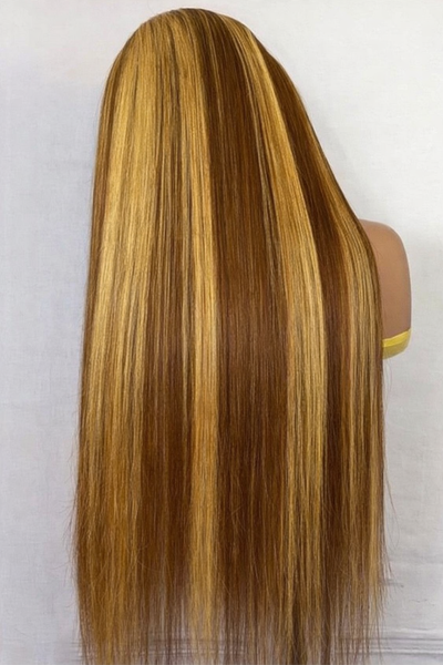 "Honey Ombre" HD Lace- Glueless Brazilian Human Hair Highlighted Straight wig