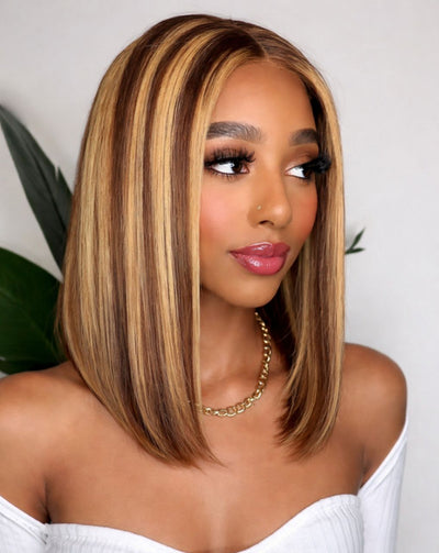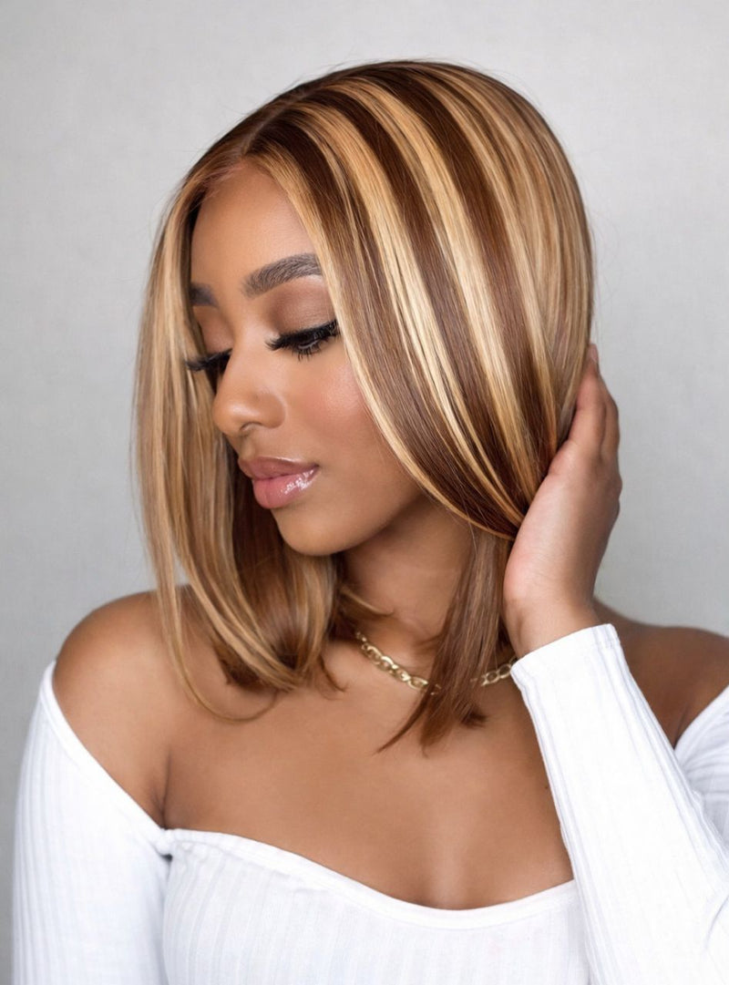 “Luxury Highlight” Glueless HD Lace Straight Bob Lace Front– 100% Brazilian Human Hair wig