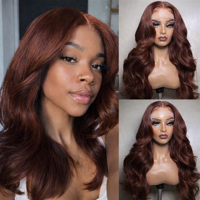“Auburn Aura" Glueless Brazilian Human Hair HD Lace Frontal – Reddish Brown Brazilian Body Wave wig