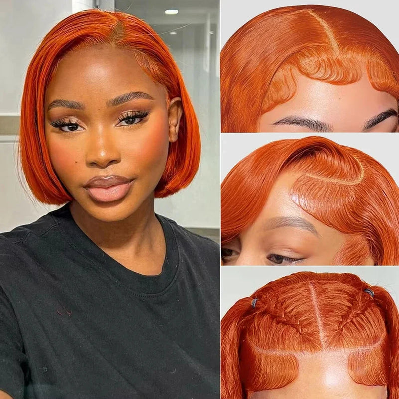 “Orange Ginger" Glueless Brazilian Human Hair Transparent Lace Bob – Straight wig