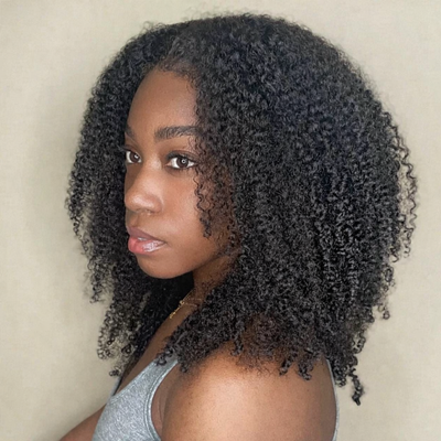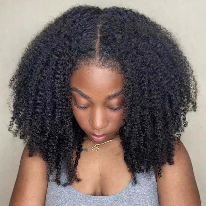 “Kinky Curl Crown™”– Transparent lace Glueless Natural Brazilian Human Hair Flip-Over Half Wig |Glueless Wear-And-Go