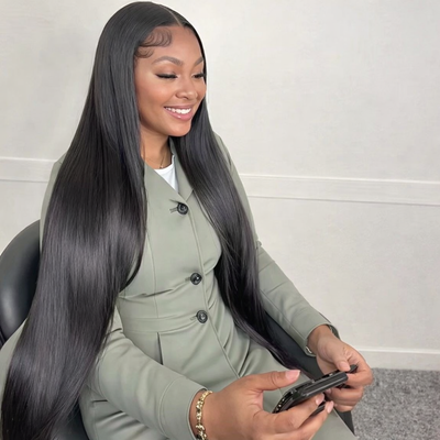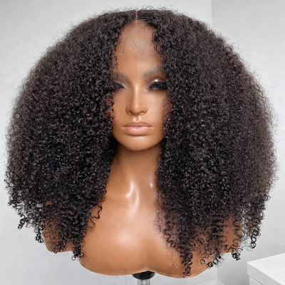 “LuxeSilk™”Kinky Glueless Straight HD Lace Frontal Wig – Pre-Plucked Natural Hairline Human Hair