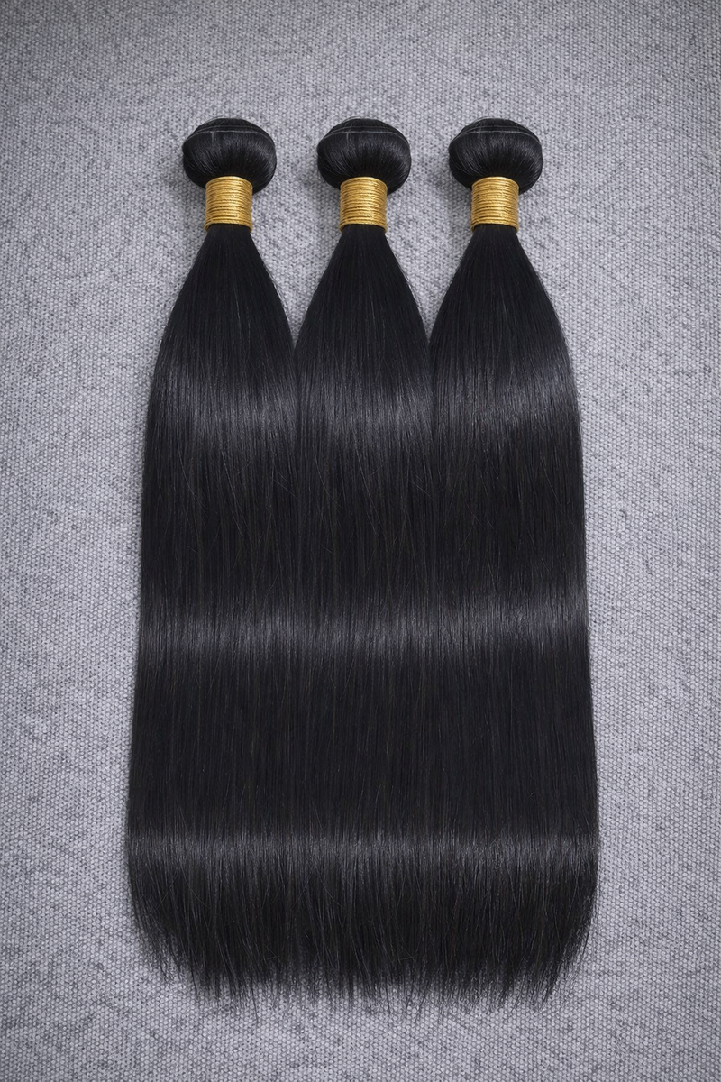 Luxury Natural JetBlack Straight 100% Virgin Brazilian Human Hair Bundle extensions