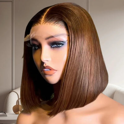 "Chocolate Brown” Glueless Brazilian Human Hair Transparent Lace Frontal-Blunt Cut Bob wig