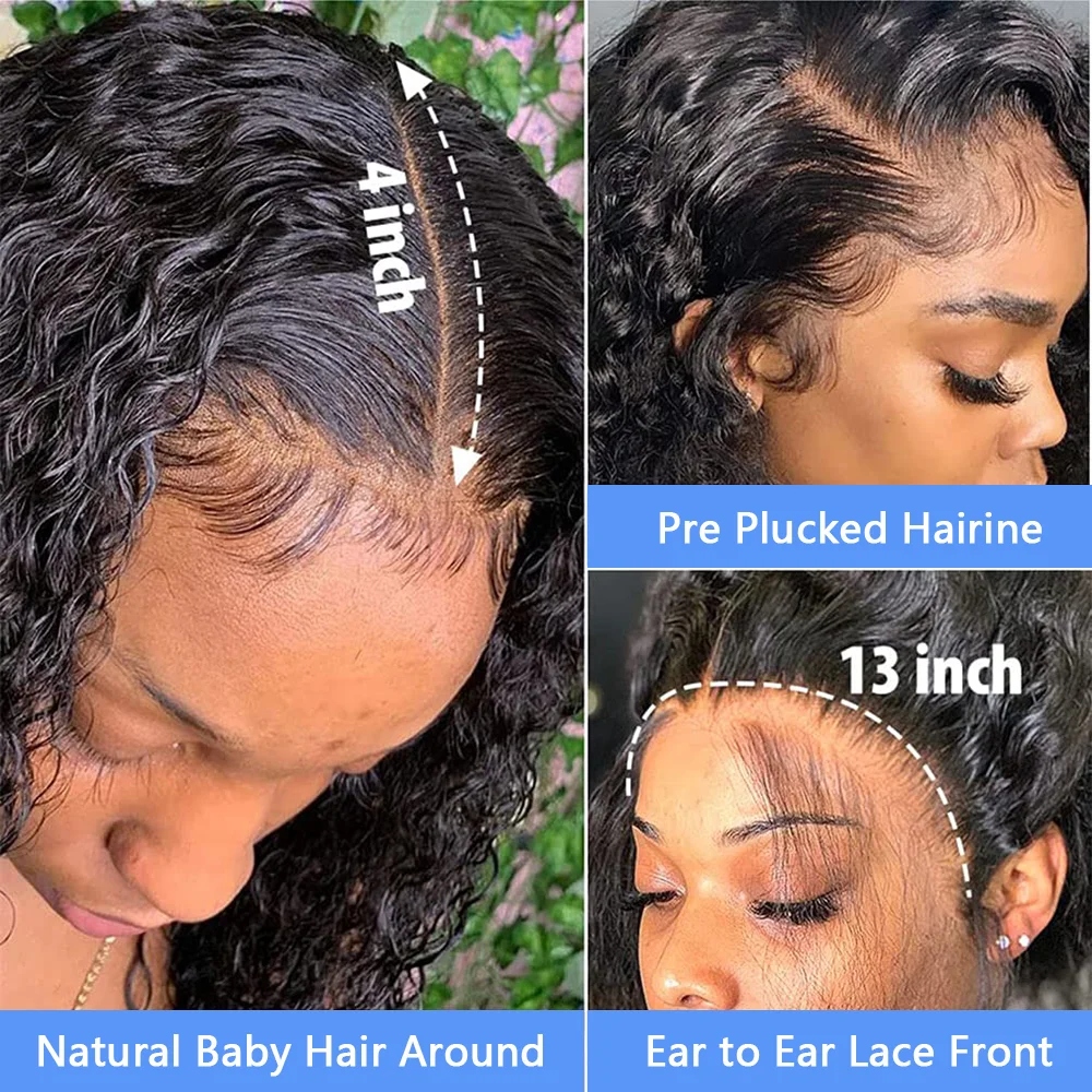 200 Density Deep Wave 13x4 Lace Front Human Hair Wigs Brazilian 100% Human Hair Pre Plucked Kinky Curly Short Bob Wigs For Women