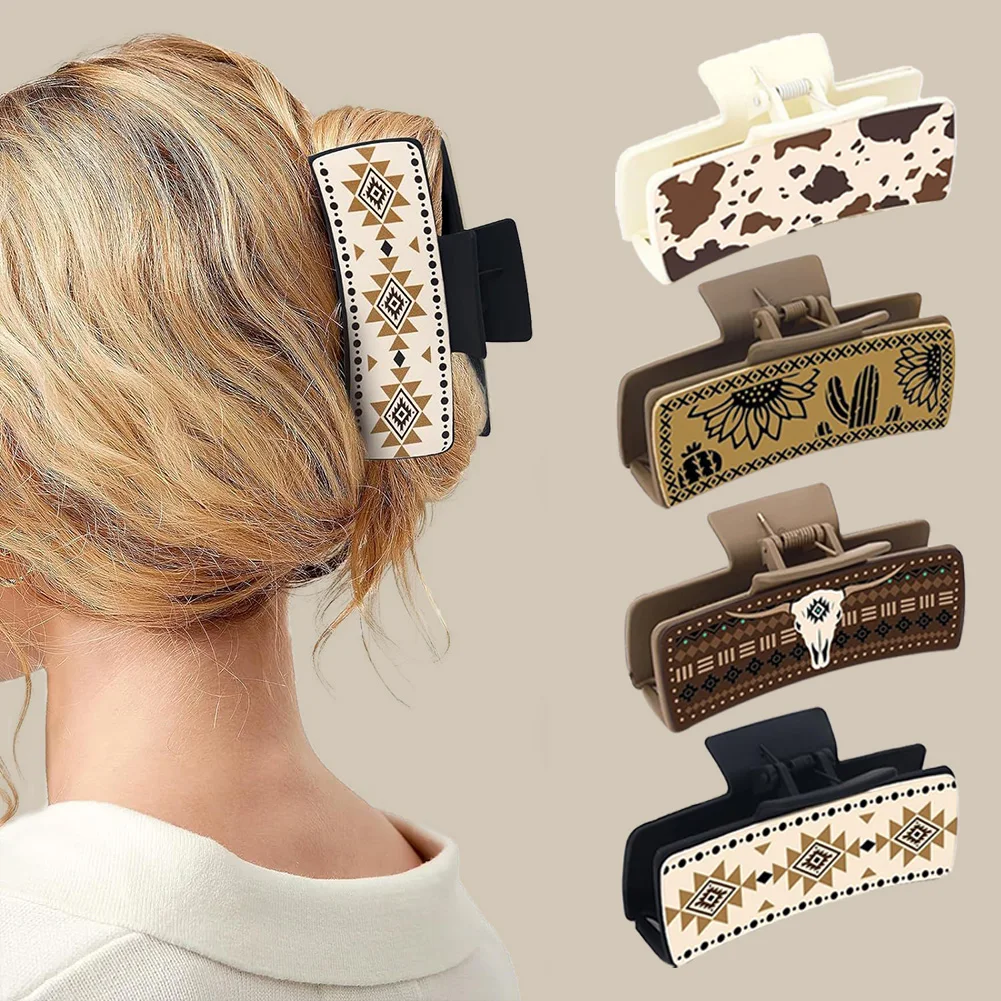1. Western Style Hair Accessories: These vintage-inspired Western hair claw clips feature leather and floral designs that enhance your look. Perfect for casual days, special occasions, or adding a touch of rustic charm to your everyday style.
