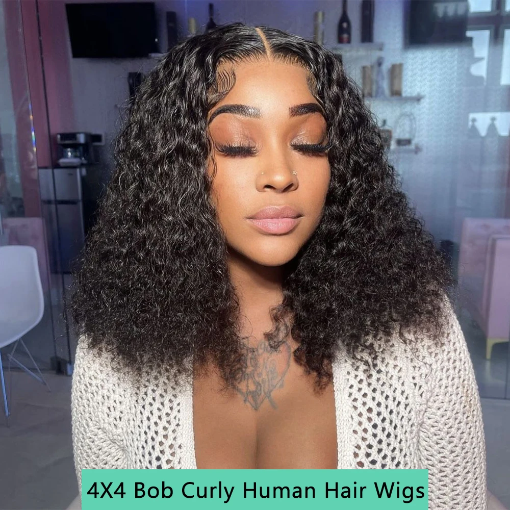 4x4 Glueless Wig Human Hair Ready To Wear 16 Inch Bob Wig Human Hair Brazilian Glueless Wigs Human Hair Water Wave Glueless Wig