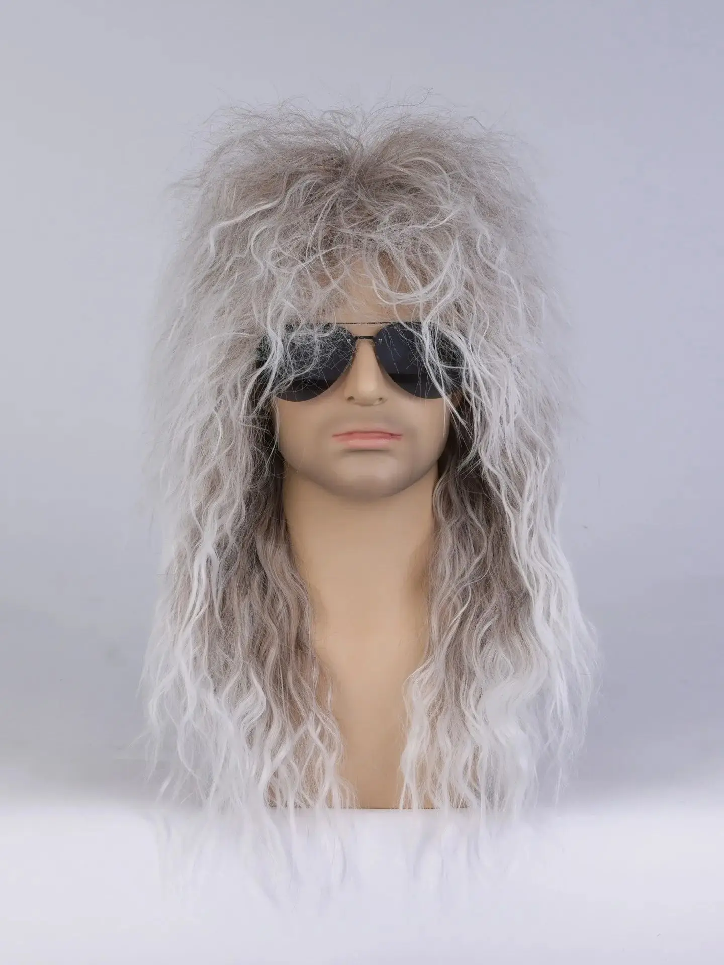 80s Rocker Synthetic Wigs for Men Mullet Wig Long Curly Hair Wig Kiss Wig Perfect for Halloween Cosplay DIY Themed Costume Party