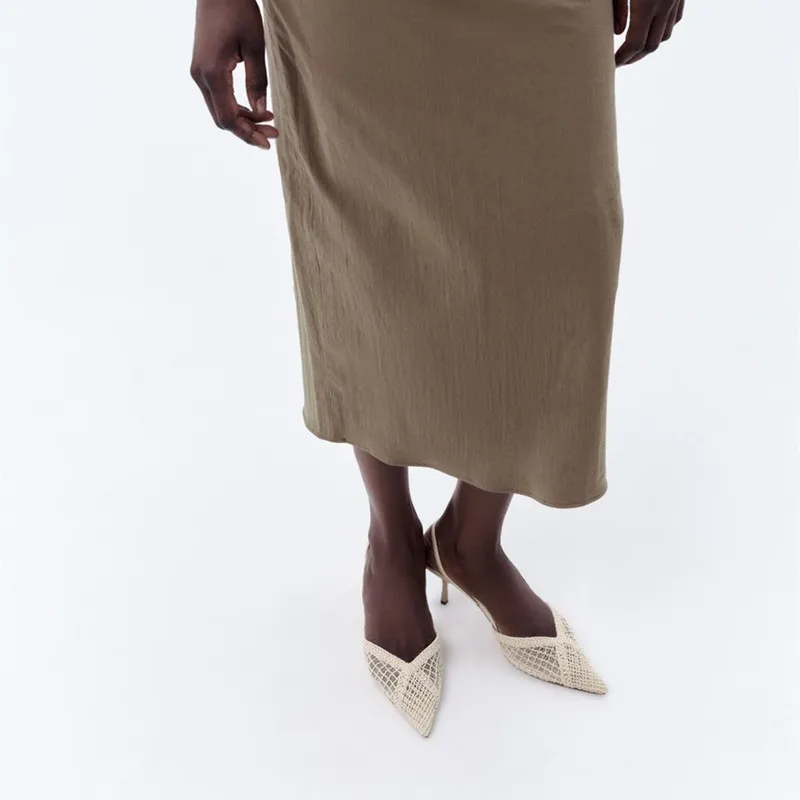Elegant Mesh Woven High Heels for Women Sexy Pointed Toe Back Strap Breathable Summer Sandals Luxury Banquet Evening Dress Heels