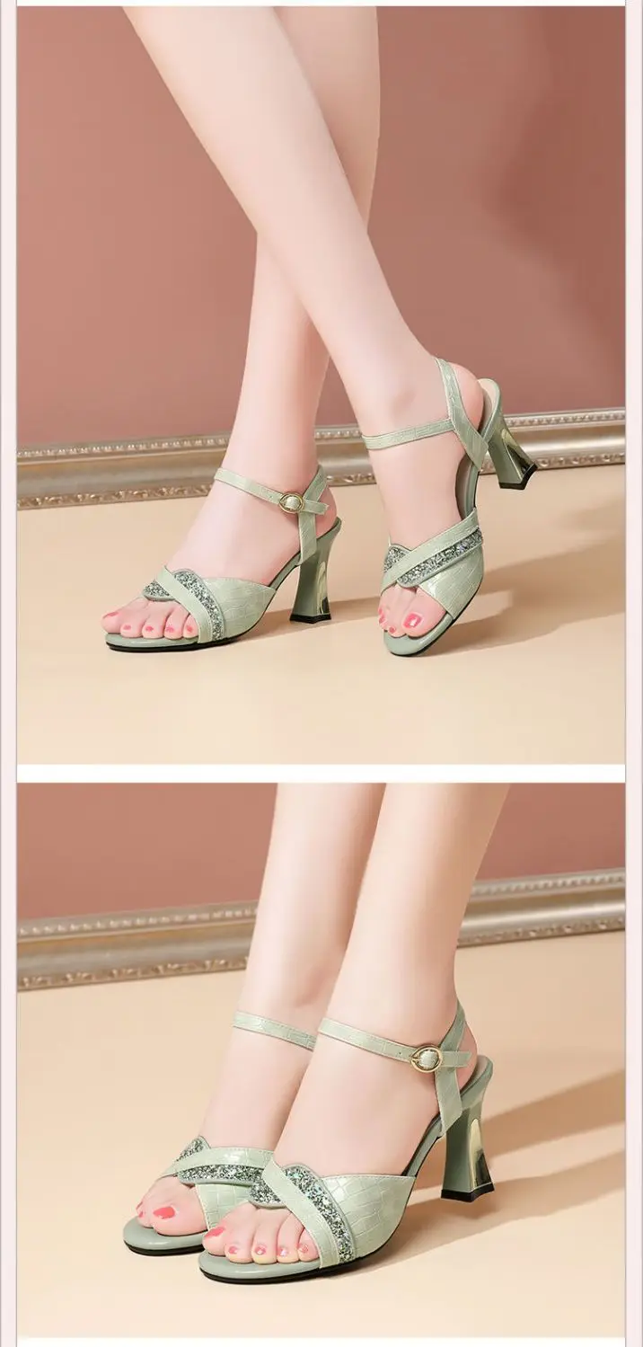 Elegant Women's Heeled Shoes Peep Toe Dress Bling Women's Sandals Trend 2025 Fashion Sexy Luxury Women's Shoe High-heeled Sandal