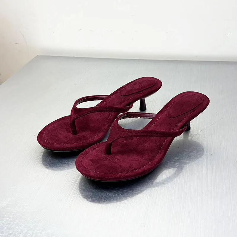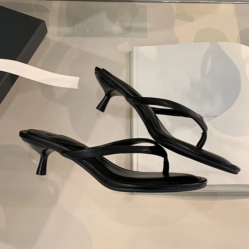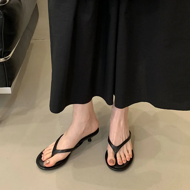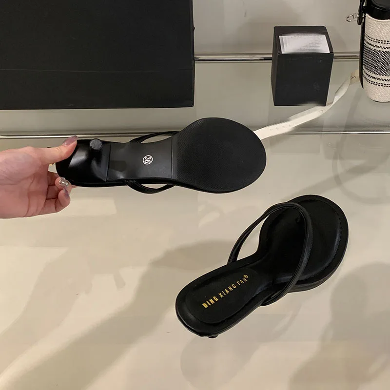 Fashion Round Toe Women Thin Heels Slippers Slides Female Flip flops Sandals Spring Summer Ladies Heeled Slippers Shoes Pumps