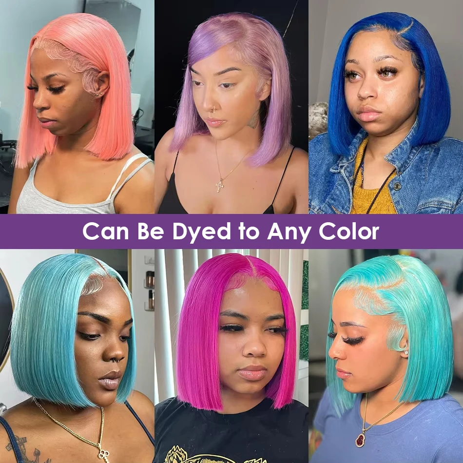 Human Hair Wig Grey Bob Wigs 200% 13x4 HD Transparent Ginger Orange Lace Front Bob Blunt Cut Straight Colored Wigs Pre Plucked