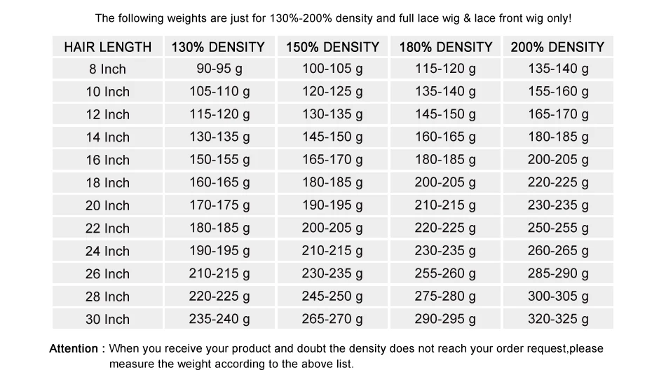 Hair Density:150% 180% 200% Density