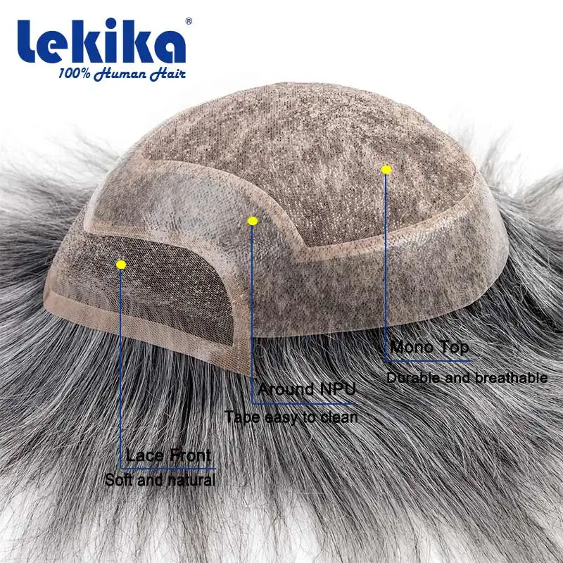 Men Wig Gray Hair Natural Haline Lace Front with Mono Top 6" Men's Capillary Prothesis Durable Toupee Men Wigs For Man