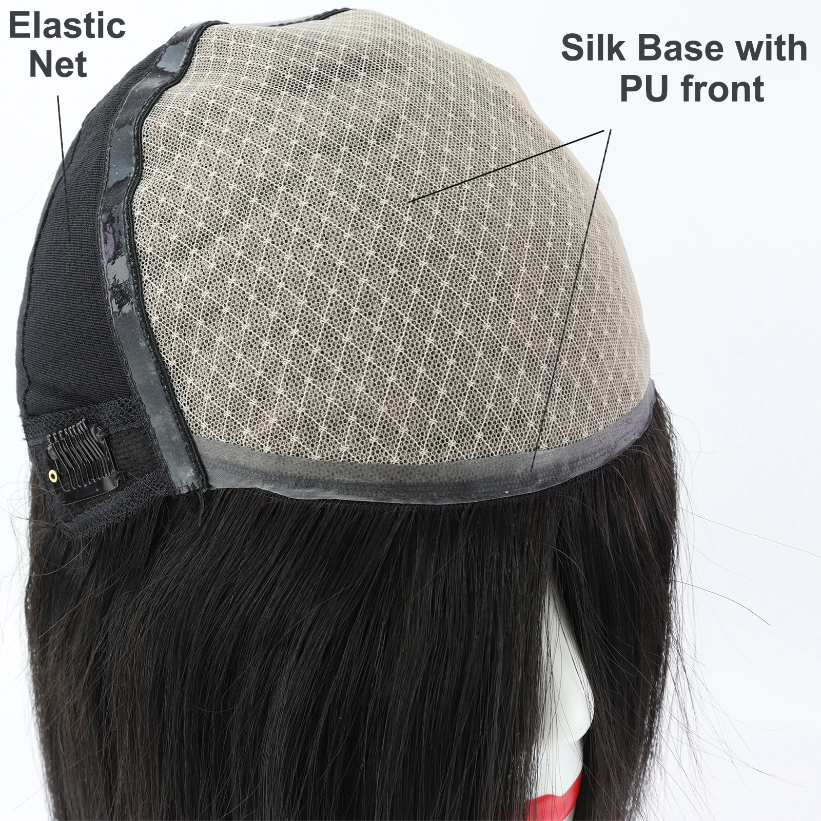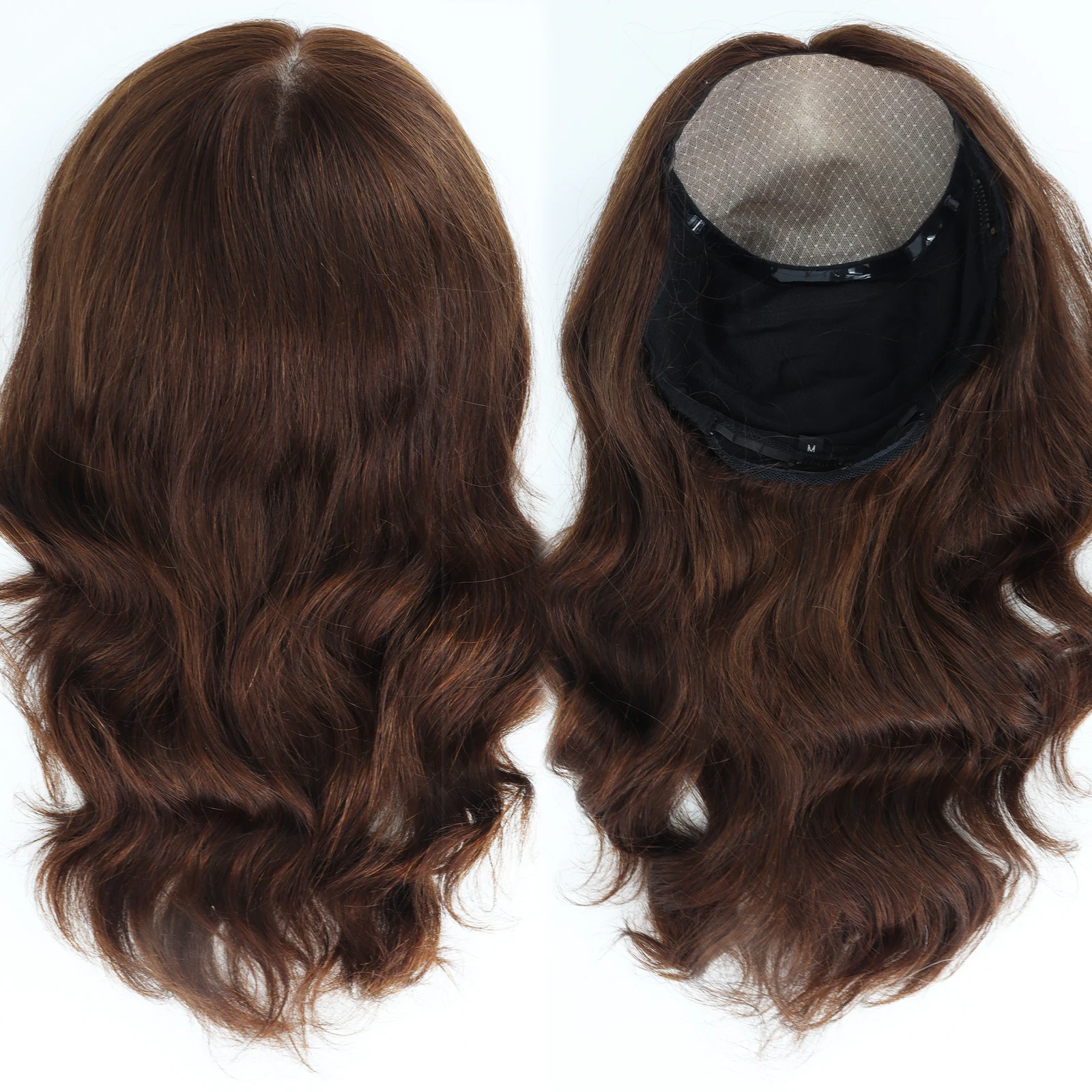 Natural Wave Human Hair Wig Medium Brown Real Virgin European Human Hair Wig for Women 6x6" Silk Base with PU Front