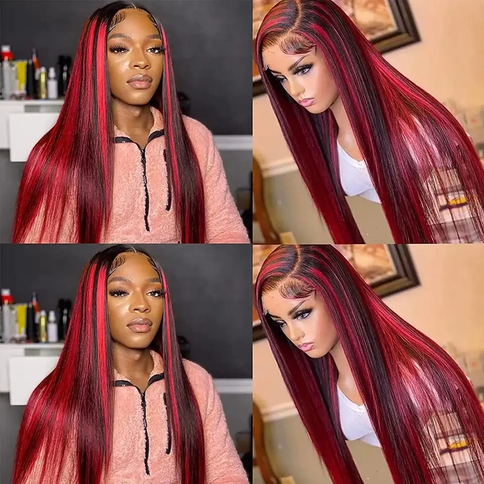 Ombre Highlight Burgundy Wig Human Hair 13x4 Straight Lace Front Wig 13x6 Hd Lace Frontal Wigs 99J Bone Straight Human Hair Wigs