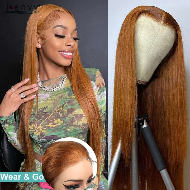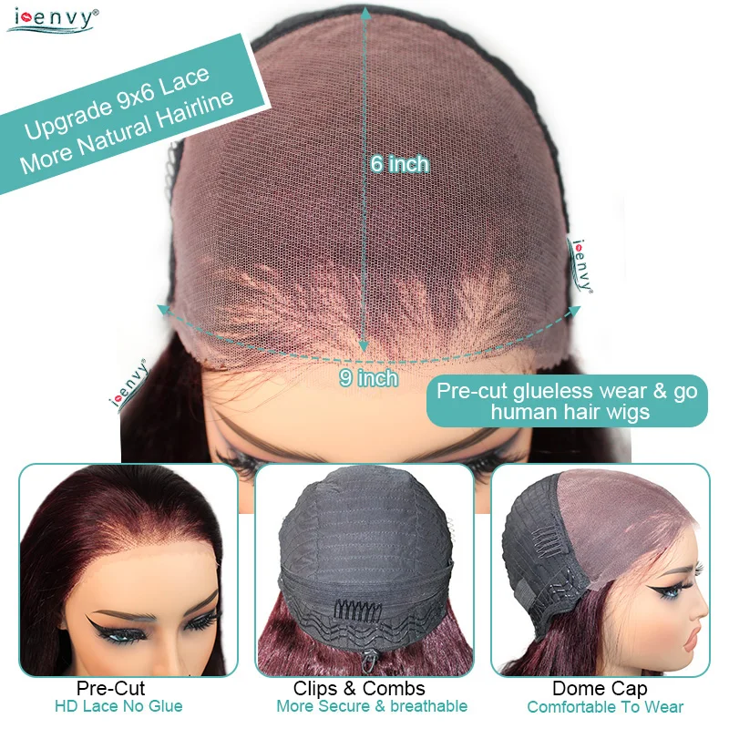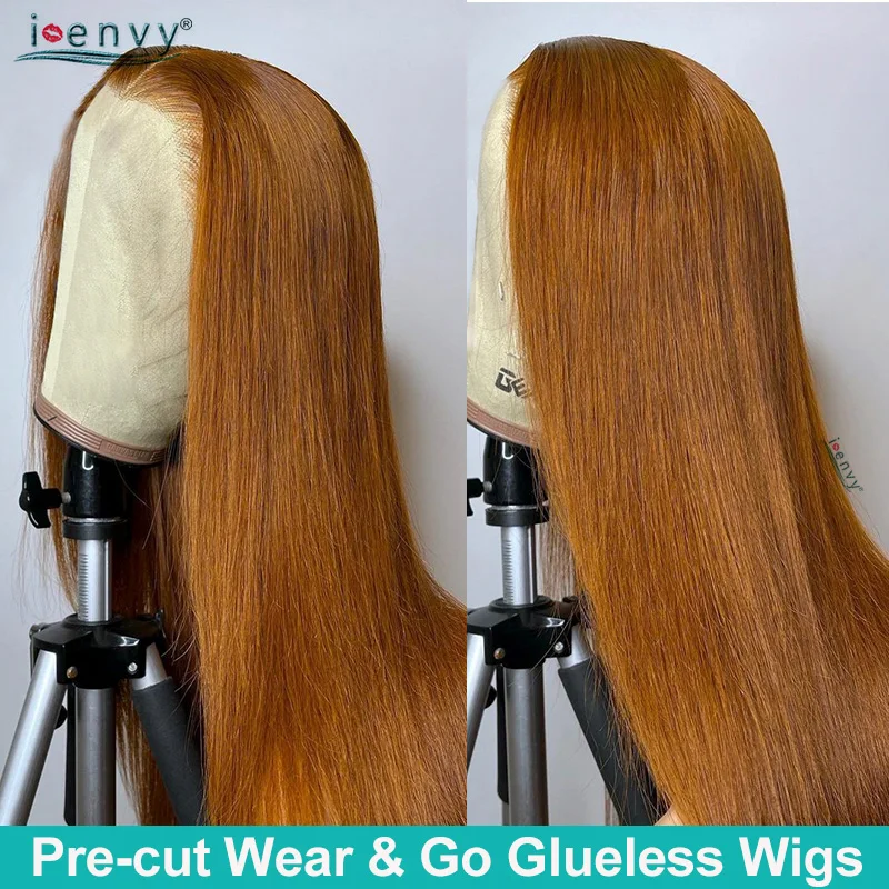 Red Burgundy Bye Bye Knots Wig Blonde Ginger Lace Front Wig 9X6 Glueless Wig Straight Human Hair Wigs Wear Go Pre-Cut Lace Wigs