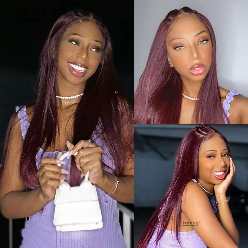 Pre-Max Colored Burgundy Lace Front Wigs For Black Women Glueless Wear & Go Wigs 9X6 Bone Straight Ginger Blonde Human Hair Wigs