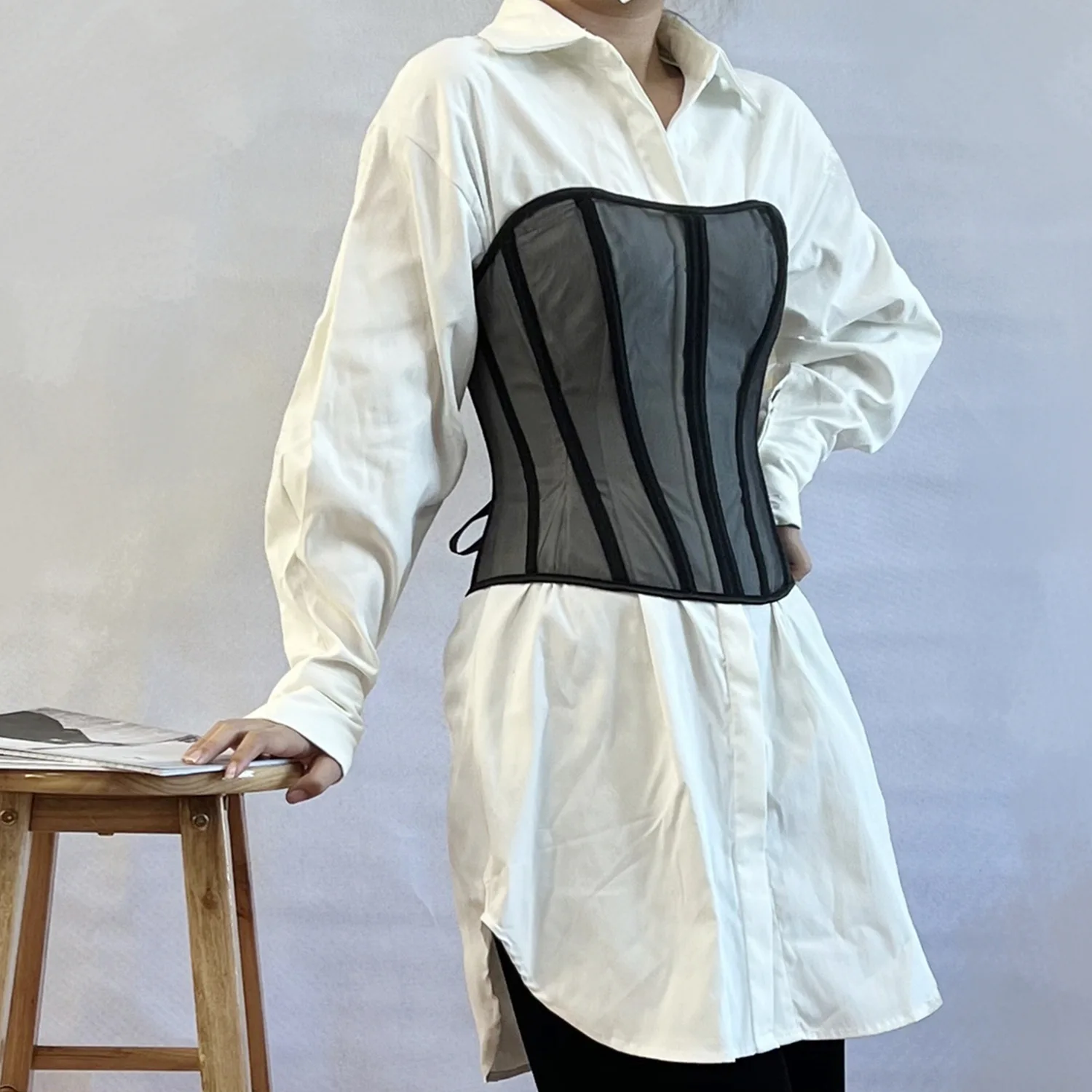 Sexy Thin Body Shaper Underwear Corset Waist Trainer Lingerie Lace Corsets Perspective Mesh Shapewear Women Fashion Clothes Faja