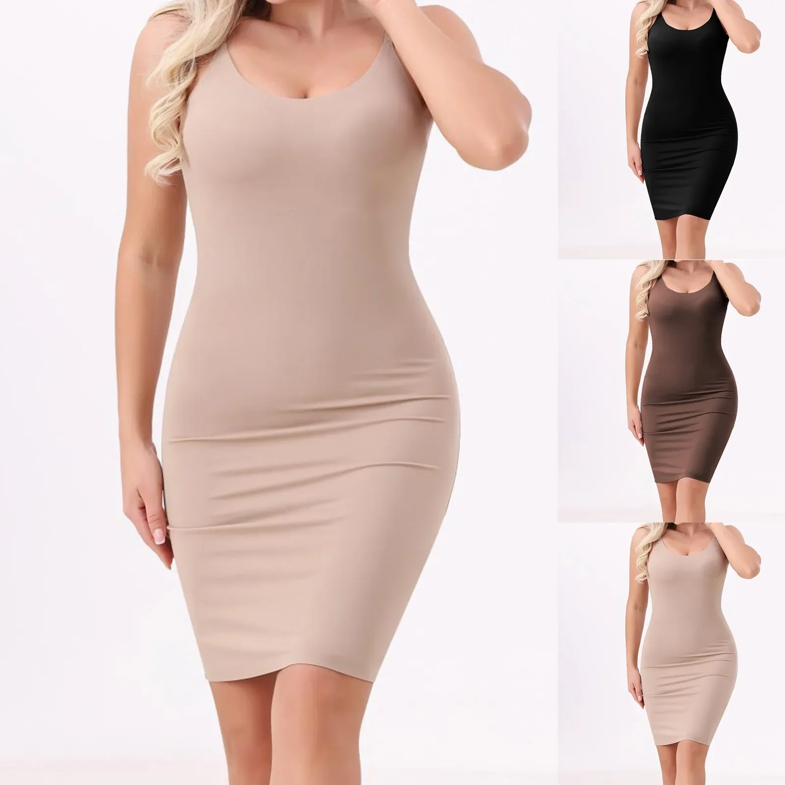 Shapewear Slips Under Dresses Dress Slips Body Shaper Tummy Control O-Neck Strap Slip Slimming Seamless Cami Slip Inner Dress