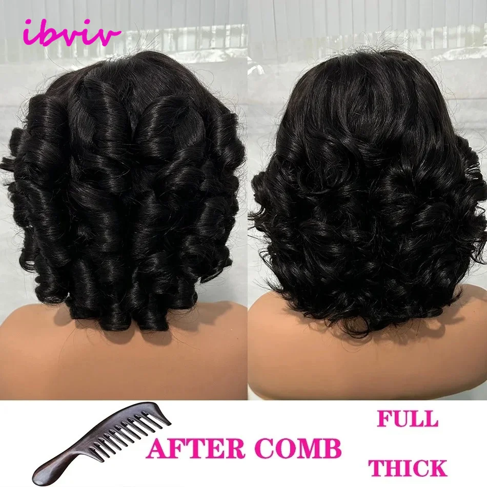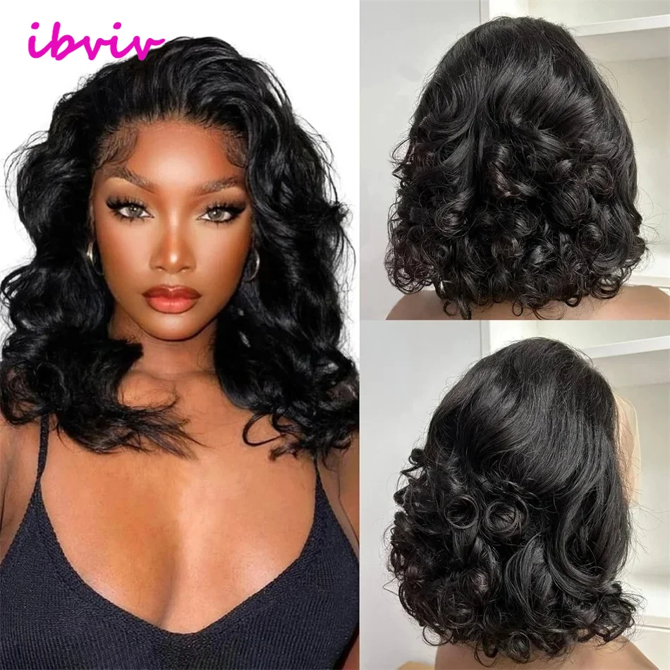 100% Vietname Bouncy Wave Wig 13x4 Frontal Loose Body Wave Wig With Human Hair Natural Black 250% Density For Black Women