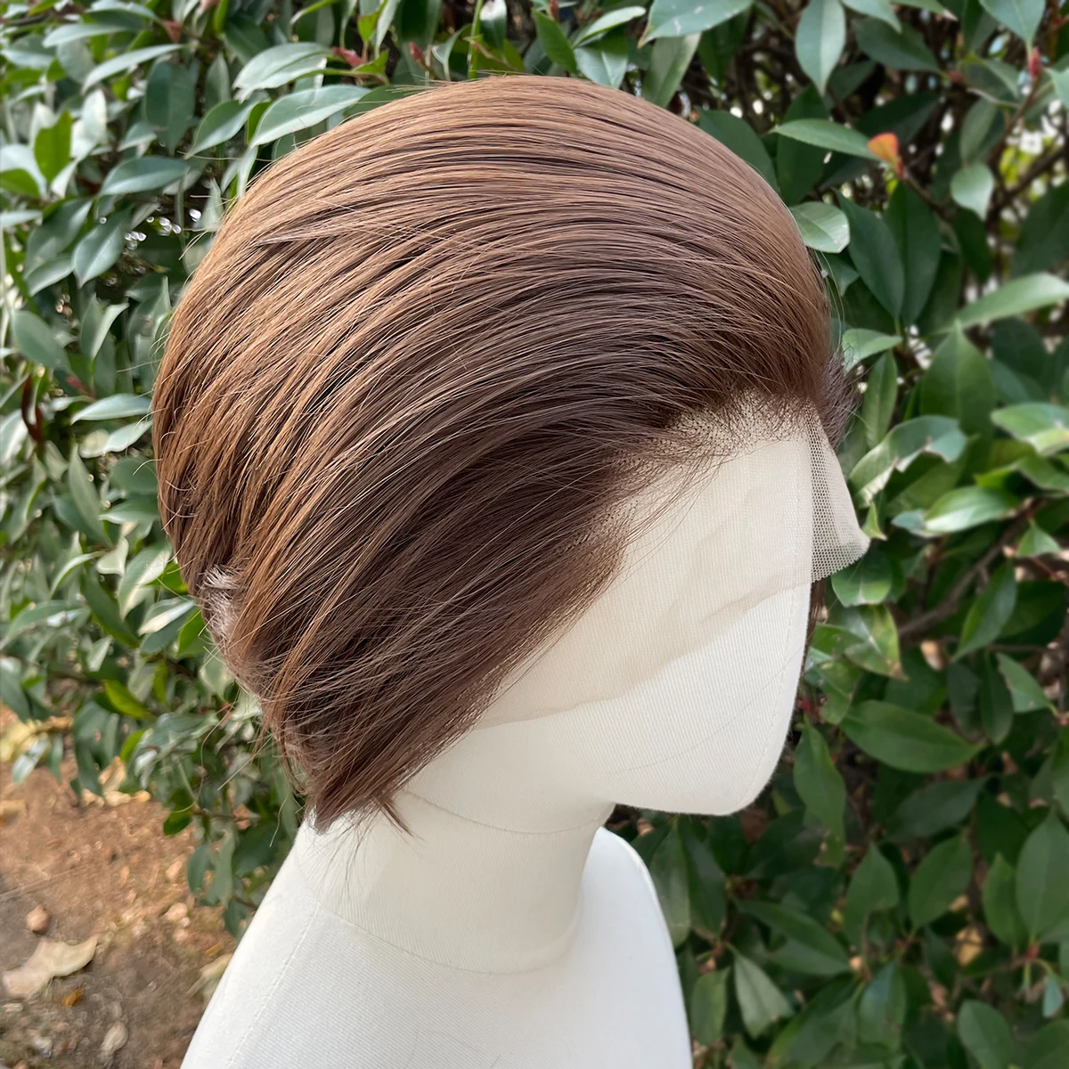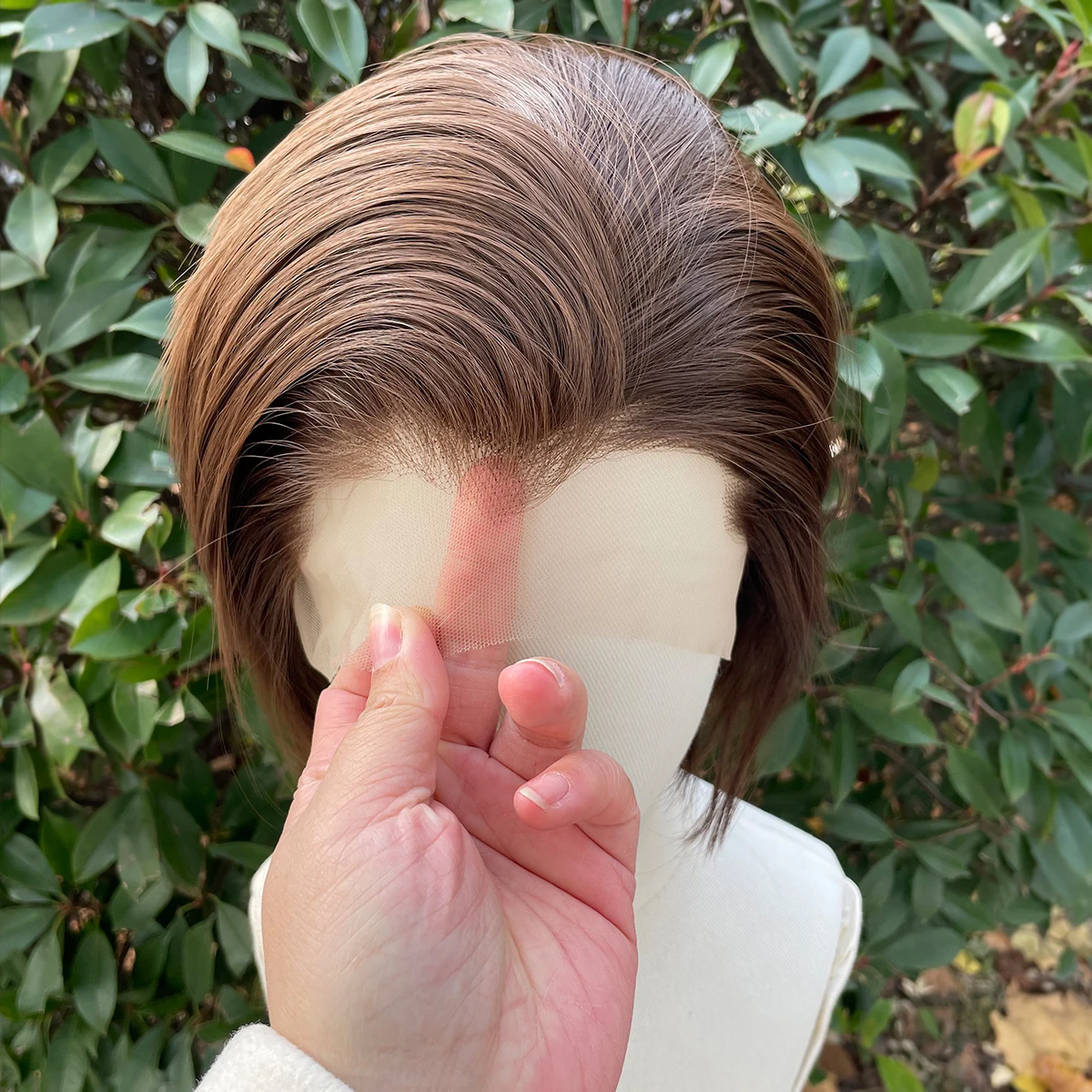 Widow‘s Peak Light Brown Synthetic Wigs for Men 13x4 Lace Front Wigs Short Bob Cut Cosplay Wigs for Women 150% Density Glueless