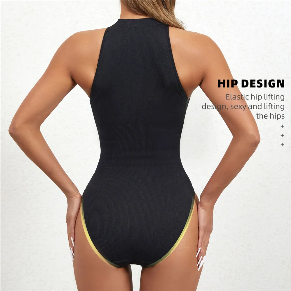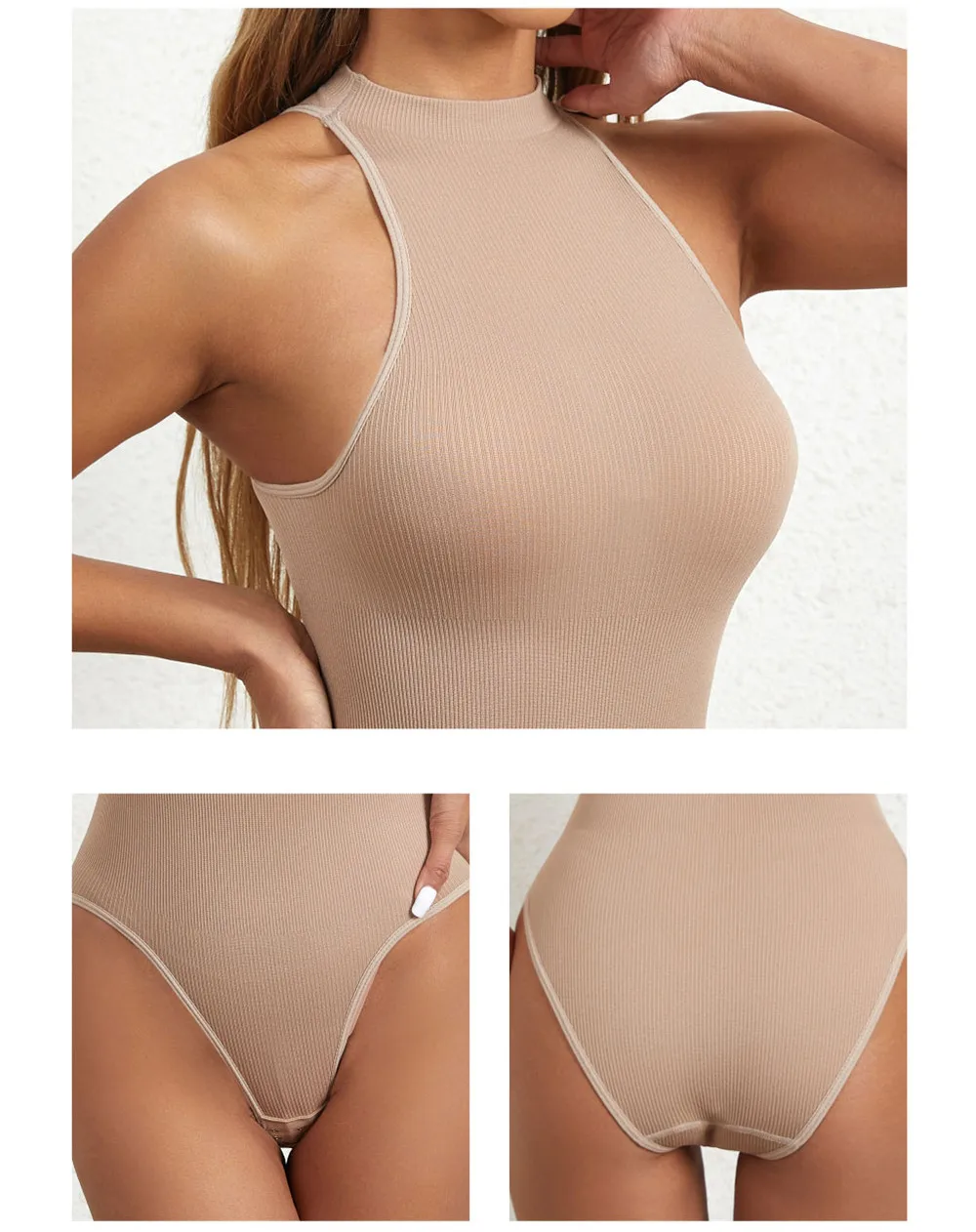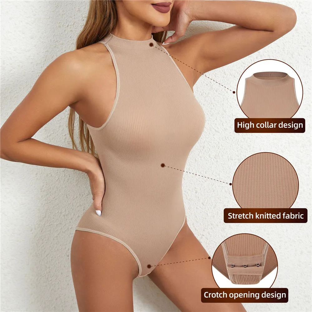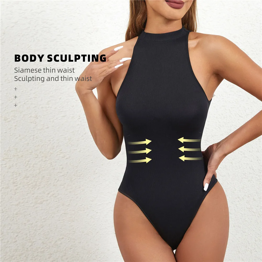 Women Round Neck Shaperwear Bodysuits Sleeveless Adjustable Buckle Tight Fitting Jumpsuit T-shaped Shapewear Corset
